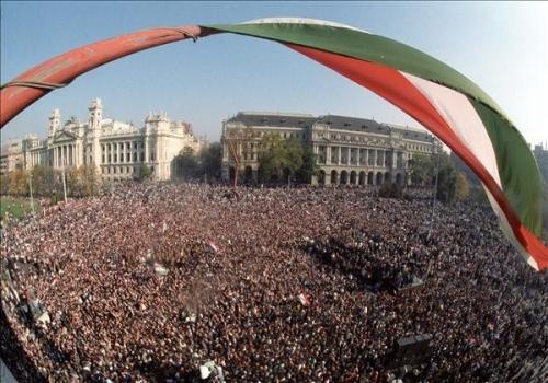 AZ ORSZÁGHÁZ TÉRRE SZERVEZETT ELSŐ POLITIKAI NAGYGYŰLÉS ÉS TÜNTETŐ KÖRMENET